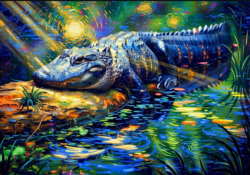 : WATERCOLOR: SWAMP-GATOR.